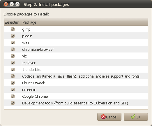 $ sudo aptitude install k3b geany amarok gparted acidrip audacious isomaster kaffeine vlc acroread hplip pptview amsn emesene filezilla wireshark startupmanager htop startupmanager amule aircrack-ng